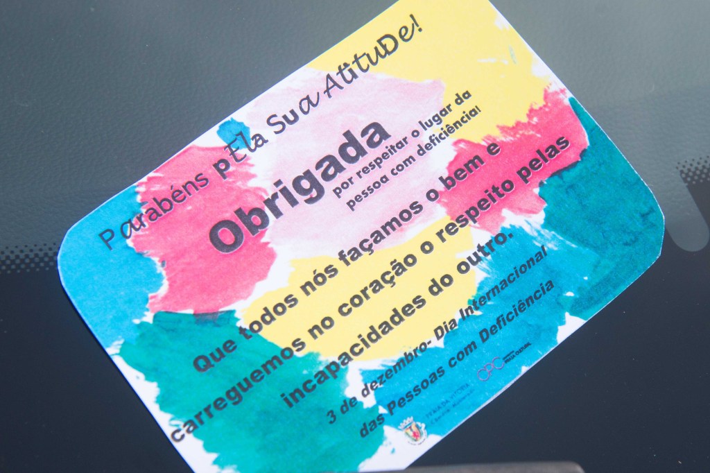 Data foi assinalada com entrega de cartões de agradecimento aos condutores que respeitam os locais de estacionamento assinalados para pessoas com mobilidade reduzida no centro urbano.
