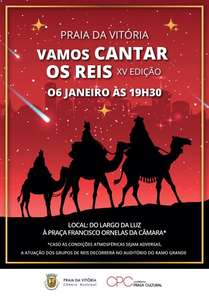 Na noite desta segunda-feira, 06 de janeiro de 2020, a Praia da Vitória vai “Cantar os Reis”, com vários grupos, oriundos de diversas localidades da ilha, a desfilarem Rua de Jesus abaixo em direção à Praça Francisco Ornelas da Câmara onde atuarão. O evento “Vamos Cantar os Reis” marca oficialmente o encerramento da programação do Natal da Câmara Municipal da Praia da Vitória (CMPV), constituindo um dos pontos altos desta mesma programação.