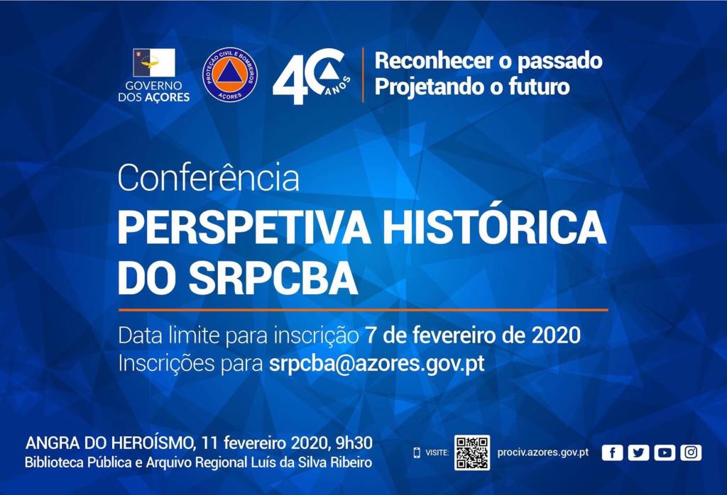 O Serviço Regional de Proteção Civil e Bombeiros dos Açores (SRPCBA), leva a efeito no próximo dia 11 de fevereiro, terça-feira, a partir das 09:30, na Biblioteca Pública e Arquivo Regional Luís da Silva Ribeiro, em Angra do Heroísmo, a conferência “Perspetiva Histórica do SRPCBA”. Esta conferência está aberta a todos os interessados, devendo as inscrições serem realizadas através do endereço de correio eletrónico srpcba@azores.gov.pt até ao próximo dia 07 de fevereiro.