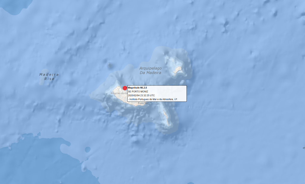 Segundo informa o Instituto Português do Mar e da Atmosfera (IPMA), ontem, dia 04 de fevereiro de 2020, às 23:32 (hora local – mais 1 que nos Açores) foi registado nas estações da Rede Sísmica do continente, um sismo de magnitude 2.8 (Escala de Richter) e cujo epicentro se localizou a cerca de 6 km a Este-Sudeste de Porto Moniz, na região região norte da ilha da Madeira.