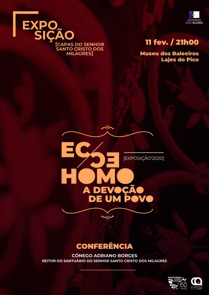 A Direção Regional da Cultura, através do Museu do Pico, inaugura terça-feira, 11 de fevereiro, pelas 21:00, no Museu dos Baleeiros, nas Lajes do Pico, a exposição “Ecce Homo – A devoção de um povo”, que apresenta algumas das mais emblemáticas capas que cobrem a imagem do Senhor Santo Cristo dos Milagres em procissão.
