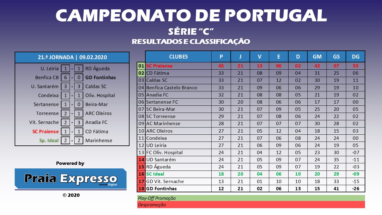 O Fontinhas, em Castelo Branco, sofreu pesada derrota (6-0) frente ao Benfica local. Depois do empate – algo promissor na última jornada – esta foi de absoluto pesadelo, com a equipa agora liderada por Nuno Janeiro a averbar a sua mais pesada derrota na competição, superando os 5-0 que lhe foi infligido pelo Caldas na 3.ª jornada a 20 de outubro de 2019. Com o prosseguir da competição o sonho da manutenção vai-se estreitando. O Fontinhas ocupa a última posição da tabela classificativa com 12 pontos, os mesmos 12 que lhe separa de um lugar que evite a despromoção.