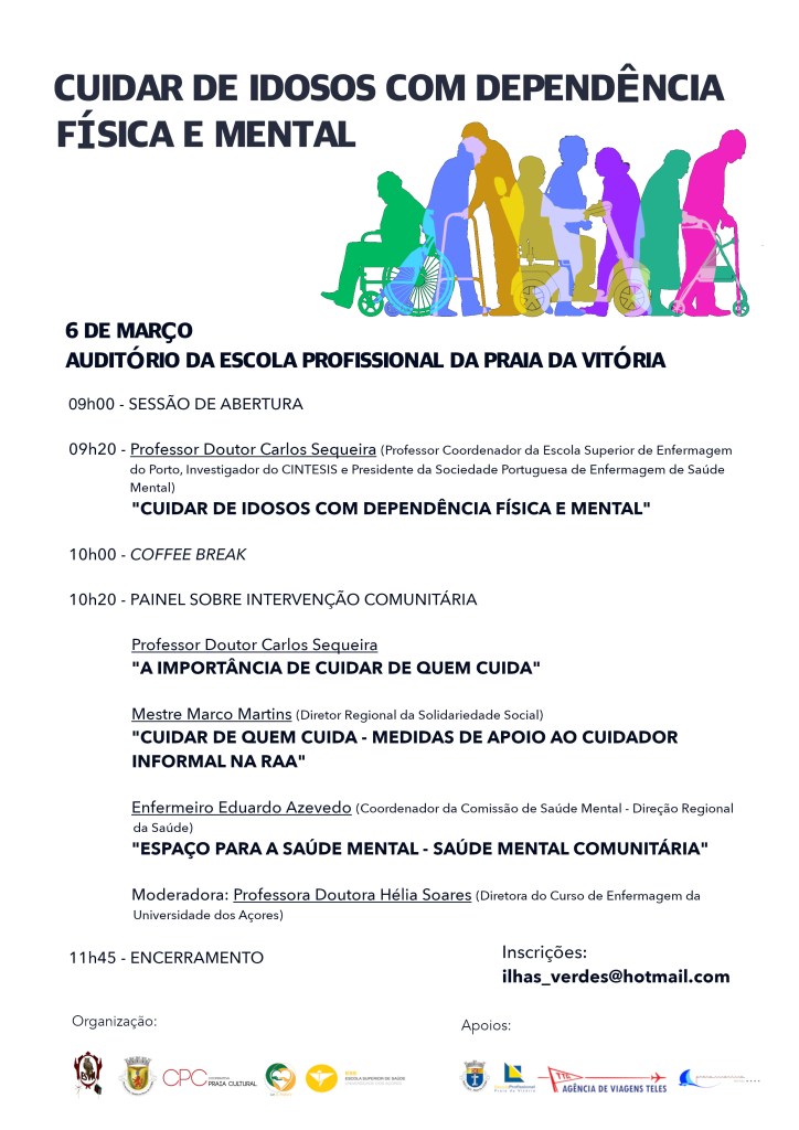 Numa iniciativa conjunta da Escola Secundária Vitorino Nemésio, da Cooperativa Praia Cultural, da Escola Superior de Saúde da Universidade dos Açores (Departamento de Enfermagem, Saúde Mental e Gerontologia) e do Lar D. Pedro V, decorrerá na manhã de 6 de março, no Auditório da Escola Profissional da Praia da Vitória, o Encontro “Cuidar de idosos com dependência física e mental”.