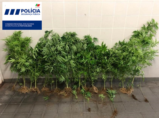 A PSP procedeu ontem à apreensão de 24 plantas de cannabis num terreno baldio no concelho da Povoação, ilha de S. Miguel, tendo procedido à detenção de dois homens alegadamente responsáveis pelo seu cultivo.