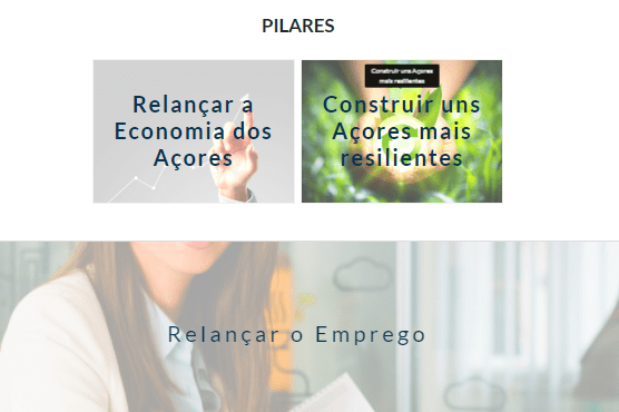 Dos nove eixos de atuação propostos, quatro estão incorporados no primeiro pilar designado por “Relançar a Economia dos Açores”, a saber: Relançar o Emprego (21 medidas), Relançar o Social (48 medidas), Relançar as Empresas (58 medidas) e Relançar o Turismo (24 medidas), com o objetivo de fortalecer a sociedade e economia Açoriana para melhor “Construir uns Açores mais resilientes” que dá o nome ao segundo pilar.