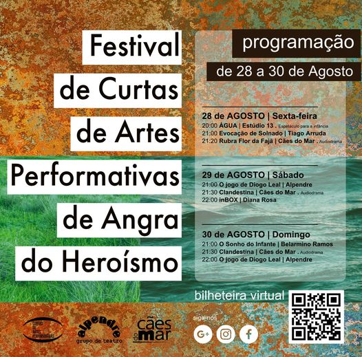 Os ingressos podem ser adquiridos por através do link fornecido pelo QR code que está divulgado na página do Festival ou no link nas redes sociais do Alpendre Grupo de Teatro e Cães do Mar.