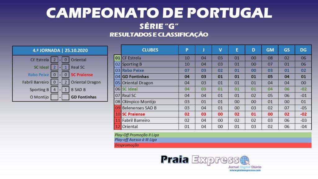 Na imagem abaixo, quadro completo de resultados desta 4.ª jornada e classificação após a mesma.