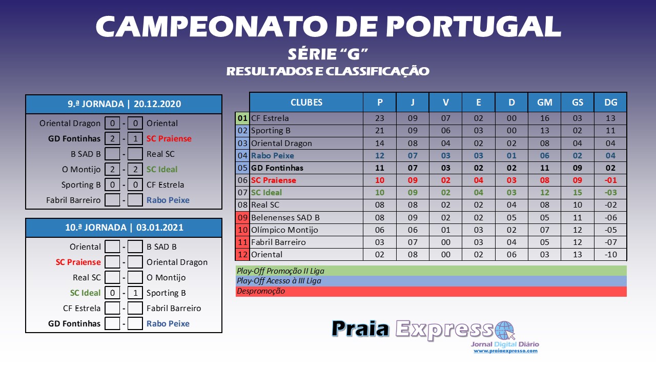 A próxima jornada (10.ª) disputa-se a 03 de janeiro de 2021, a qual conta já com uma partida realizada. No passado dia 09 de dezembro, o SC Ideal recebeu o Sporting B, com os lisboetas a vencerem por 0-1.