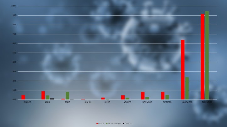 O passado mês de dezembro revelou-se o mês com mais casos diagnosticados desde março de 2020 (916). É também em dezembro que se regista o maior número de recuperações (946), fruto da atualização dos critérios entretanto introduzidos pela ASR de acordo com as diretivas da Direção-Geral da Saúde. Em contrapartida, o mês de junho, apresentou o menor número de casos dos últimos 10 meses do ano, apenas seis.