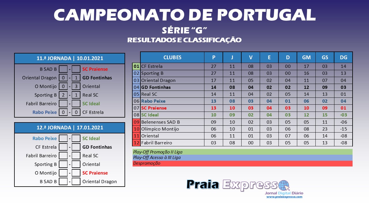 Resultados da 11ª jornada do Campeonato de Portugal, série “G”, disputada este fim de semana bem como tabela classificativa após a mesma e quadro dos jogos agendados para a próxima ronda.