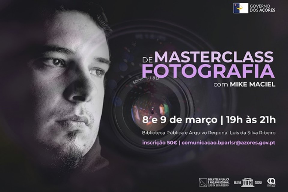A Biblioteca Pública e Arquivo Regional Luís da Silva Ribeiro, em Angra do Heroísmo, promove nos dias 08 e 09 de março, das 19:00 horas às 21:00 horas, uma MasterClass com o fotógrafo Mike Maciel.