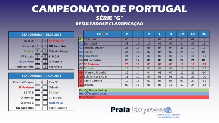 Se o empate do Fontinhas em Marvilha frente a Oriental, pode até ser considerado como positivo ao ter sido alcançado fora de portas, o facto de ter defrontado o lanterna vermelha da série, não deixa de revelar-se um pouco “agridoce” para aqueles que são os objetivos dos comandados por Francisco Agatão. Por outro lado, apesar de o empate do Ideal se ter verificado no seu reduto, a verdade, é que o mesmo foi concedido frente ao atual terceiro classificado da série.