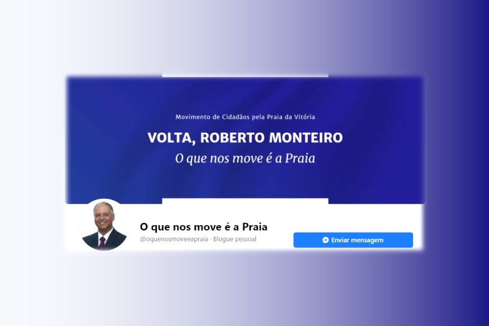 Uma página criada a 18 de março na rede social Facebook, apela ao regresso do ex-presidente da Câmara Municipal da Praia da Vitória Roberto Monteiro. Na imagem da capa, recentemente atualizada, pode ler-se “Volta, Roberto Monteiro”, subscrita pelo “Movimento de Cidadãos pela Praia da Vitória”. Na imagem de perfil, igualmente recentemente atualizada, vê-se uma fotografia tipo “BI” de Roberto Monteiro.