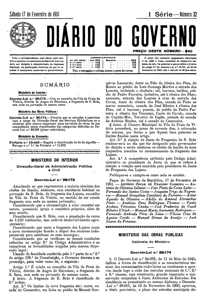 O Povo de São Brás celebrou a elevação a freguesia no dia 25 de março seguinte — domingo da Ressurreição desse ano de 1951. Na celebração popular marcaram presença autoridades civis de Angra do Heroísmo e da Praia da Vitória.