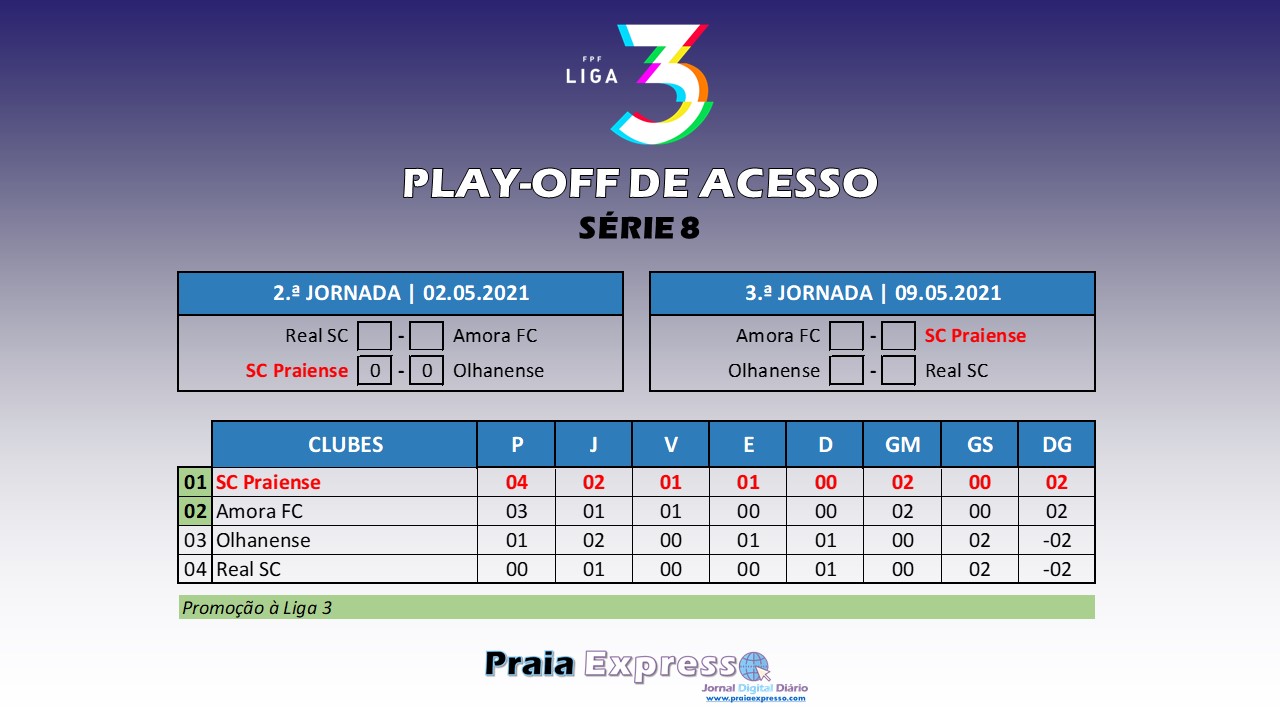O SC Praiense entra agora numa fase onde jogará 3 jogos fora de casa. Na próxima jornada, 09 de maio, em casa do Amora FC, a 16, na casa do Real, e a 22, no reduto do Olhanense. Os ‘vermelhos’ voltam ao Estádio Municipal da Praia da Vitória a 30 de maio, para defrontar o Amora FC, referente à 6.ª e última jornada desta Série “8” de qualificação para a Liga 3.