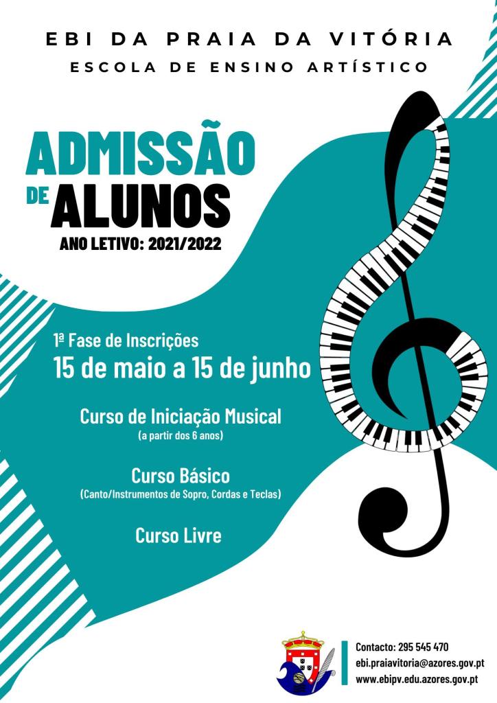 Decorre até ao próximo dia 15 de junho, a 1.ª Fase de Inscrições (admissão de alunos) para o próximo ano letivo (2021/2022) na Escola de Ensino Artístico da Escola Básica-Integrada (EBI) da Praia da Vitória.