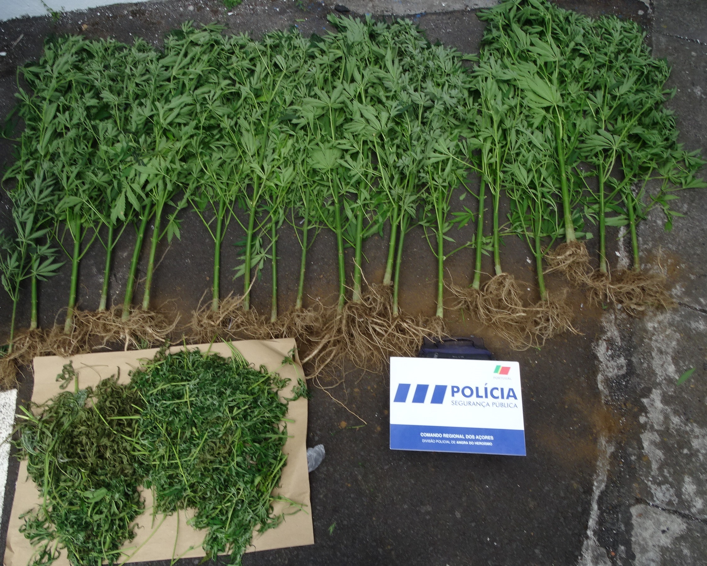 No comunicado, o Comando Regional informa, que a “detenção ocorreu na sequência de uma intervenção policial, tendo sido detetadas e apreendidas, na posse do suspeito, 20 plantas de Liamba com um comprimento de 1,70 metros e 01 com 90 cms, folhagens da referida planta suficientes para preparar 402 doses e ainda 2 doses de haxixe”.