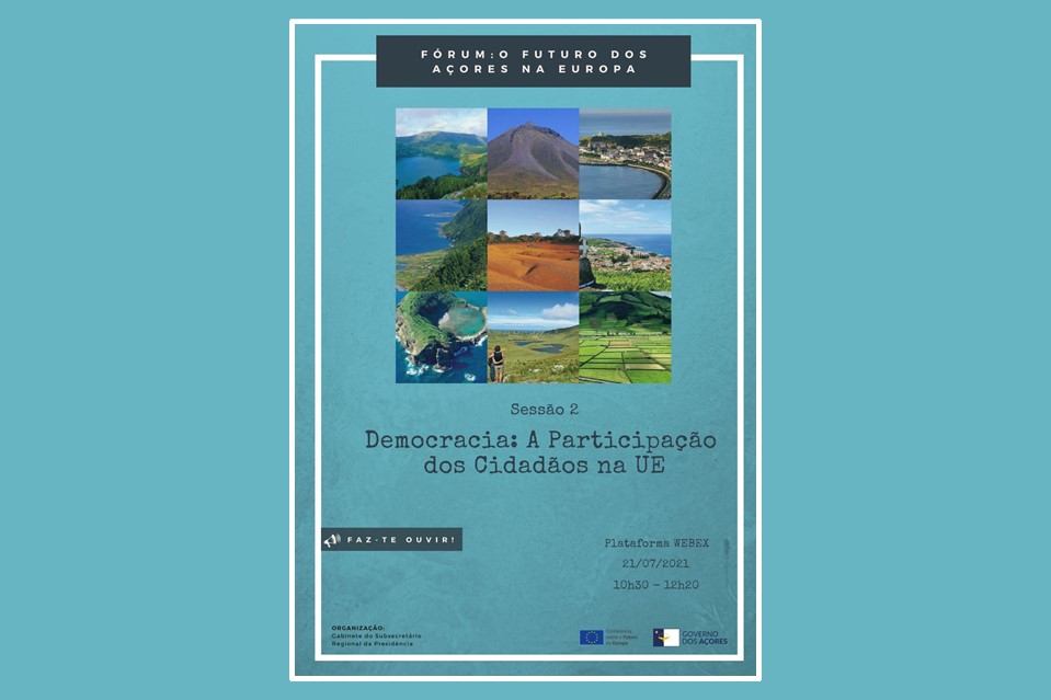 O gabinete do subsecretário regional da Presidência do Governo dos Açores e a Direção Regional dos Assuntos Europeus e Cooperação Externa organizam, na quarta-feira, a segunda sessão do fórum “O Futuro dos Açores na Europa”, dedicado ao tema “Democracia: A Participação dos Cidadãos na UE”.