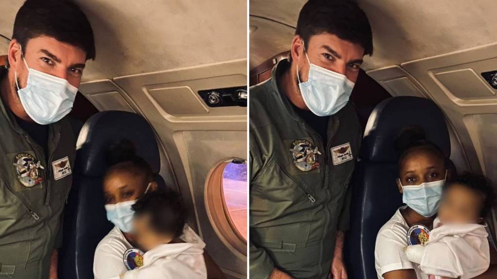 A publicação é ilustrada com fotograma acima, na qual o Força Aérea partilha as imagens que registaram o momento, “com o Comandante da aeronave, mãe e a bebé”.
