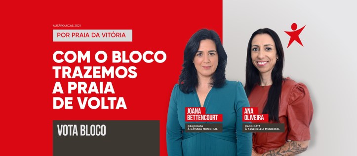 Joana Bettencourt (JB) — Quando recebi o convite para ser cabeça de lista à Câmara Municipal da Praia da Vitória, senti-me honrada. Não podia virar costas a este desafio, até porque não faz parte da minha essência. Tendo eu acompanhado sempre a realidade deste concelho, sempre nutri uma certa revolta, pois muita coisa ficou por fazer! A Praia da Vitória parece que parou no tempo e é aí que entramos nós, Bloco de Esquerda (BE), aí é que as nossas políticas se mostram mais necessárias do que nunca no poder autárquico. Tenho a certeza absoluta de que este é o trabalho certo para mim, o trabalho de lutar por um Concelho estagnado no tempo e no espaço. Para mim a vida é feita de lutas, é feita do ultrapassar de desafios, e nós lutaremos. Lutaremos por responder à crise social e económica criada pela pandemia Covid-19, lutaremos para garantir o direito à habitação de todas e de todos, lutaremos pelo clima e pela mudança da mobilidade, lutaremos para combater desigualdades sociais e pelo reforço dos serviços públicos, lutaremos pela defesa da igualdade plena, lutaremos pela democracia, transparência e pelo combate à corrupção, e faremo-lo sempre através de políticas que coloquem as pessoas no centro das decisões. Portanto, aceitei este desafio porque assento os meus pilares no coletivo, no bem de todas e todos, porque o encaro, como encaro a vida: o melhor para mim é o melhor para todos. Acredito que consigo fazer mais e melhor pela Praia da Vitória, acredito realmente que com o Bloco trazemos a Praia de Volta!
