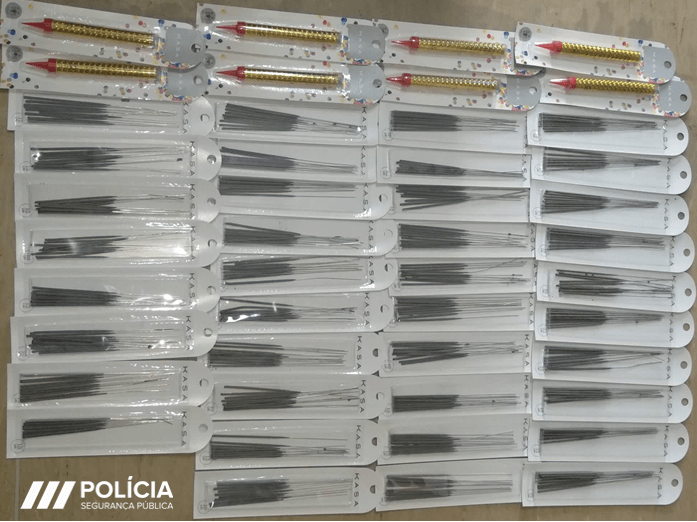 Realização de uma operação de fiscalização, através dos Polícias da Brigada de Fiscalização de Armas e Explosivos, direcionada à comercialização de artigos de pirotecnia de livre circulação, foram apreendidas 388 artigos pirotécnicos da Categoria F1, por incumprimento de obrigações legais por parte do seu detentor (imagem acima).