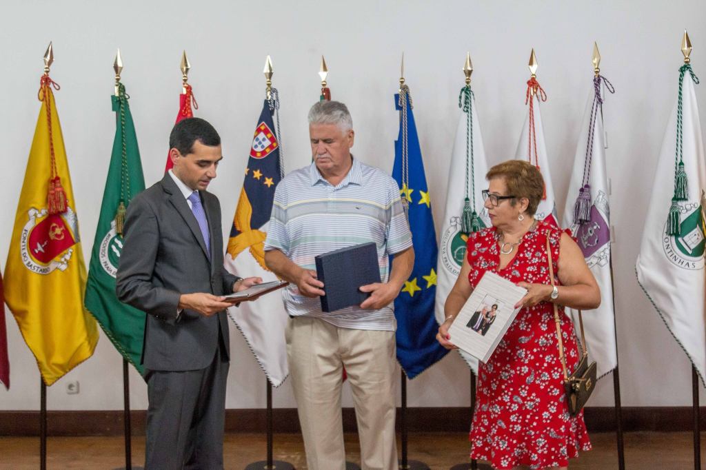 O presidente da Câmara Municipal da Praia da Vitória, Tibério Dinis, homenageou quinta-feira, o casal emigrante praiense Teresa e Hélio Melo, pelo seu empenho e forte “contributo para o fortalecimento da ligação entre a comunidade praiense da Diáspora e o concelho da Praia da Vitória”.
