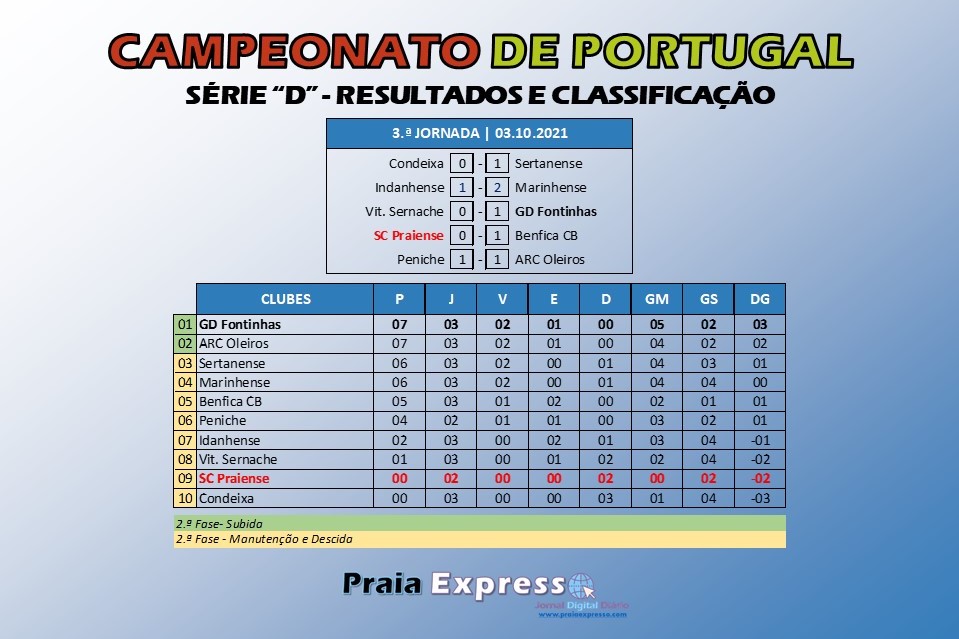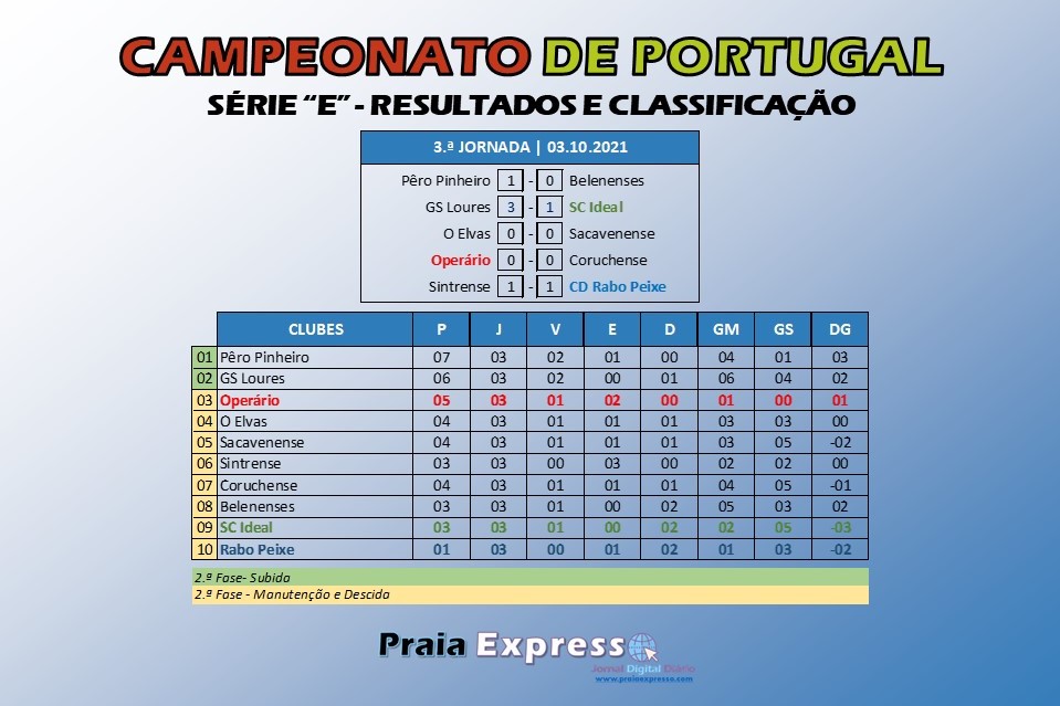 CAMPEONATO DE PORTUGAL — SÉRIES “D” E “E” — 3.ª JORNADA — RESULTADOS