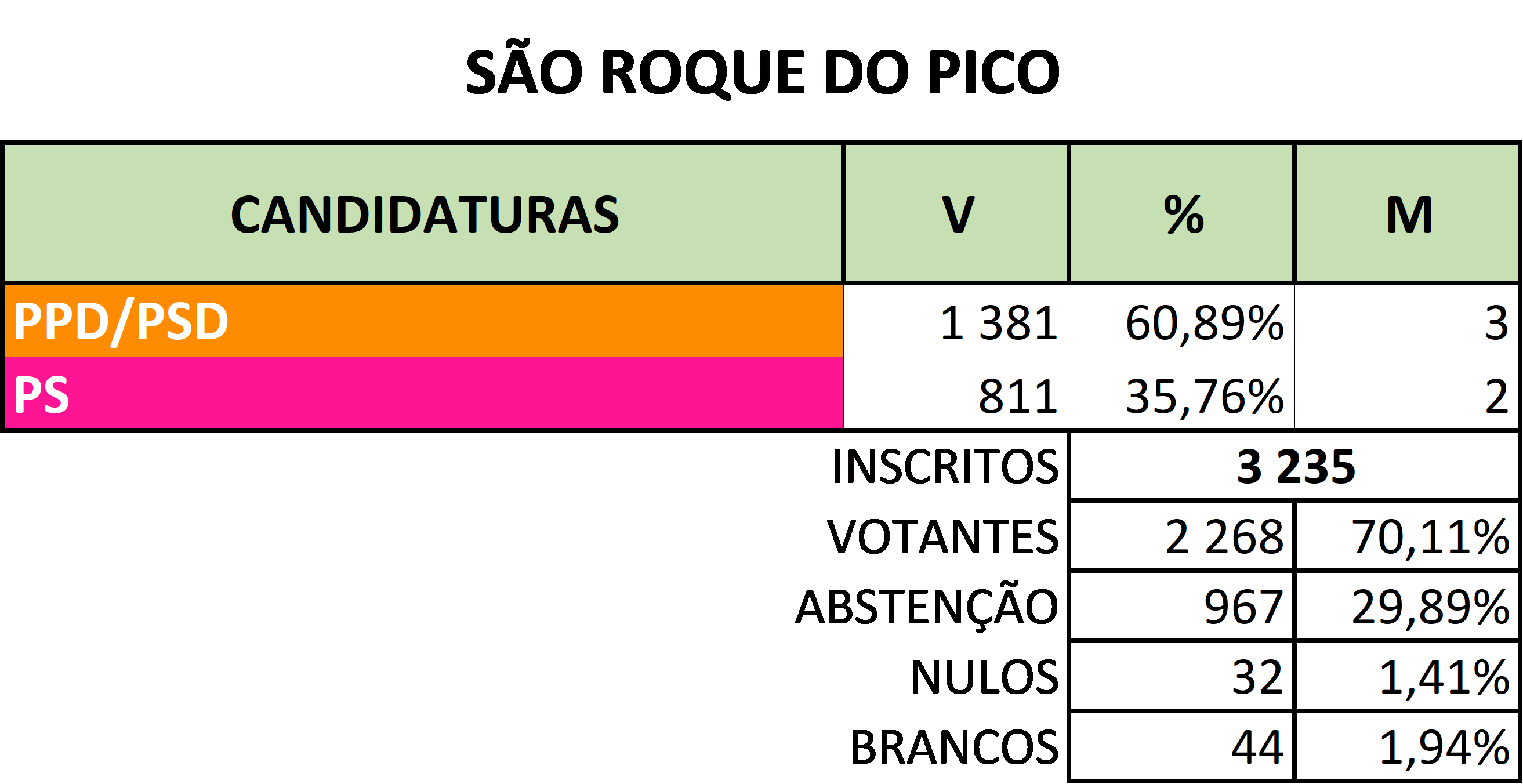 Por inerência do cargo de presidente de junta foram empossados na Assembleia Municipal Marta Matos (Santo Amaro), Vanda Serpa (Prainha), Luís Ávila (São Roque), Paulo Silva (Santo António) e Fernando Silva (Santa Luzia).