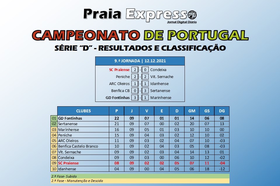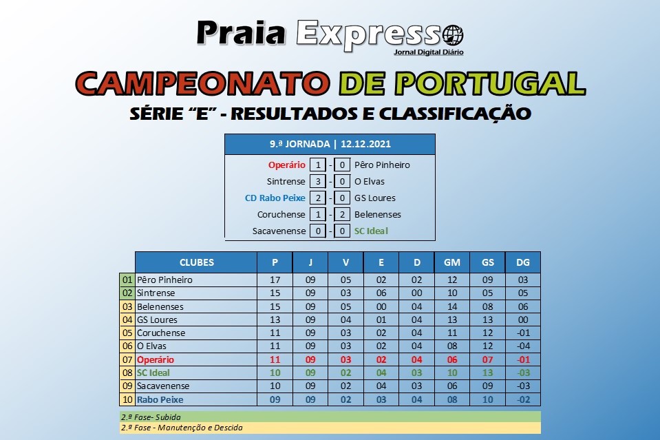 Resultados das séries “D” e “E” referentes à 9.ª jornada do Campeonato de Portugal.