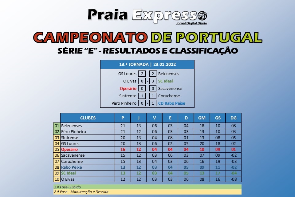 Resultados das séries “D” e “E” referentes à 12.ª jornada do Campeonato de Portugal.