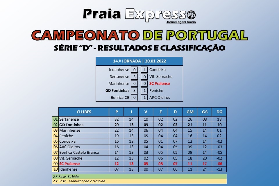 Resultados das séries “D” e “E” referentes à 14.ª jornada do Campeonato de Portugal.
