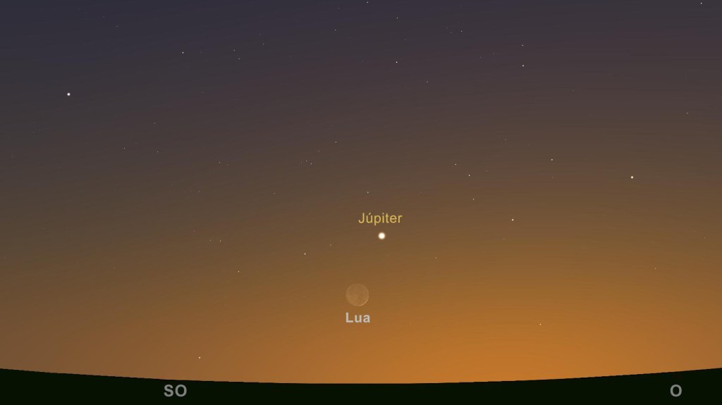 No início do mês o planeta Júpiter ainda se vê virado a Oeste, ao anoitecer, mas aproxima-se cada vez mais do Sol, no céu. No fim do mês começa a cruzar a nossa estrela e deixa de se ver durante algumas semanas, reaparecendo ao amanhecer, lá para o fim de março.