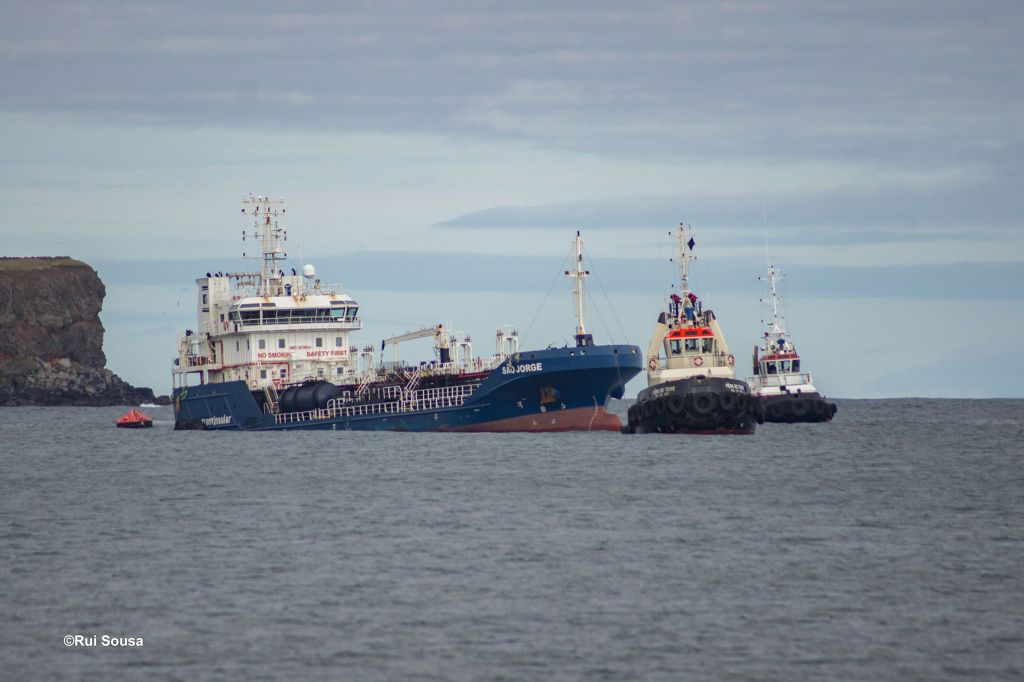 Após uma longa e delicada operação de reboque, o navio-tanque da Transinsular “São Jorge” acostou na tarde desta sexta-feira no porto oceânico da Praia da Vitória.