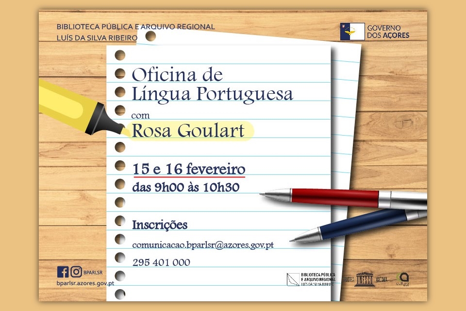 A Biblioteca de Angra do Heroísmo, promove, esta terça e quarta-feira, dias 15 e 16 de fevereiro, das 09:00 às 10:30 horas, uma oficina de língua portuguesa, ministrada pela professora Rosa Goulart.