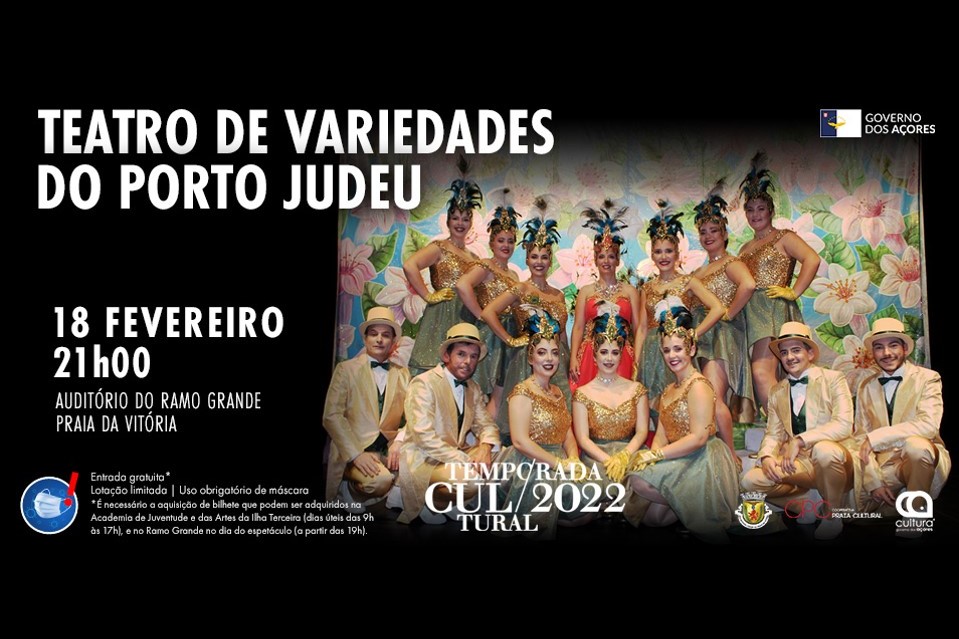O “Teatro de Variedades do Porto Judeu” atua esta sexta-feira, 18, pelas 21:00 horas, no Auditório do Ramo Grande, na cidade da Praia da Vitória, no âmbito da Temporada Cultural 2022 da Direção Regional da Cultura.
