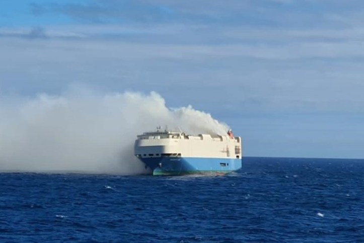 O navio que fazia a ligação entre o porto de Emden (Alemanha) e Rhode Island (EUA), com dimensão equiparada a três campos de futebol americano, ainda esta sexta-feira continuava em chamas e à deriva, mas sem causar qualquer foco de poluição, segundo o porta-voz da Marinha e da Autoridade Marítima Nacional.