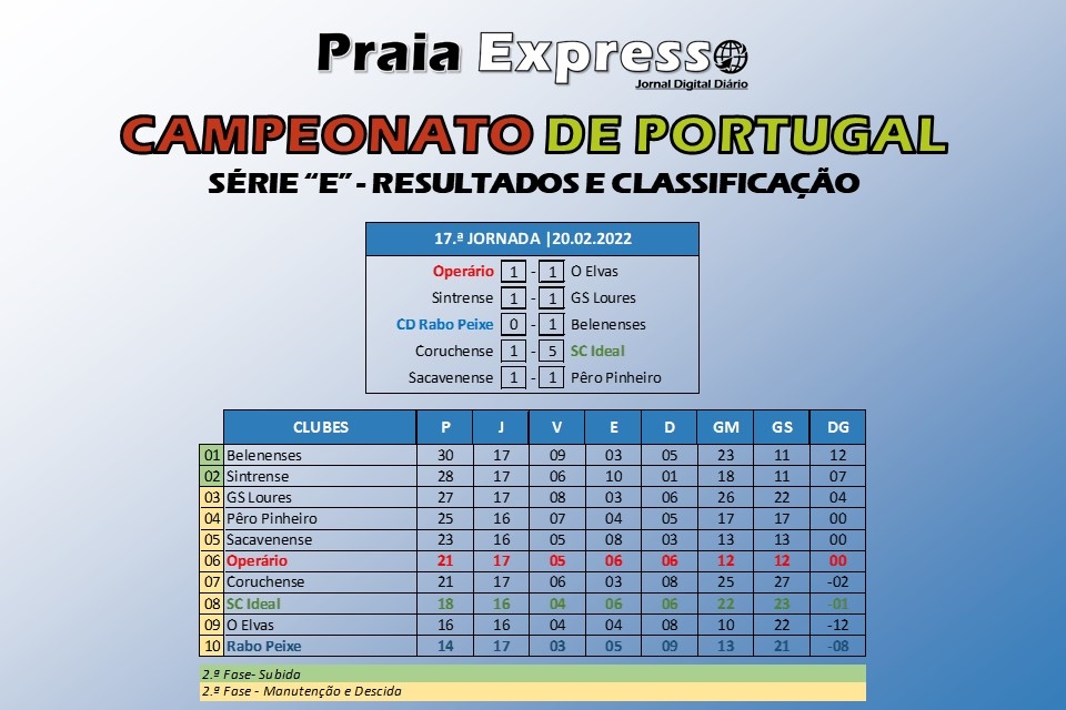 Resultados das séries “D” e “E” referentes à 17.ª e penúltima jornada do Campeonato de Portugal.