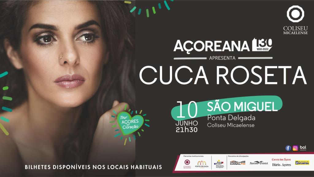 Nove concertos. Um por cada ilha do arquipélago dos Açores. Este foi o itinerário de Cuca Roseta. A fadista percorre as nove ilhas com um espetáculo em cada. A digressão, que se faz com o apoio da Açoreana (que comemora 130 anos), permite que as receitas de cada concerto sejam totalmente revertidas para uma entidade de cada ilha.