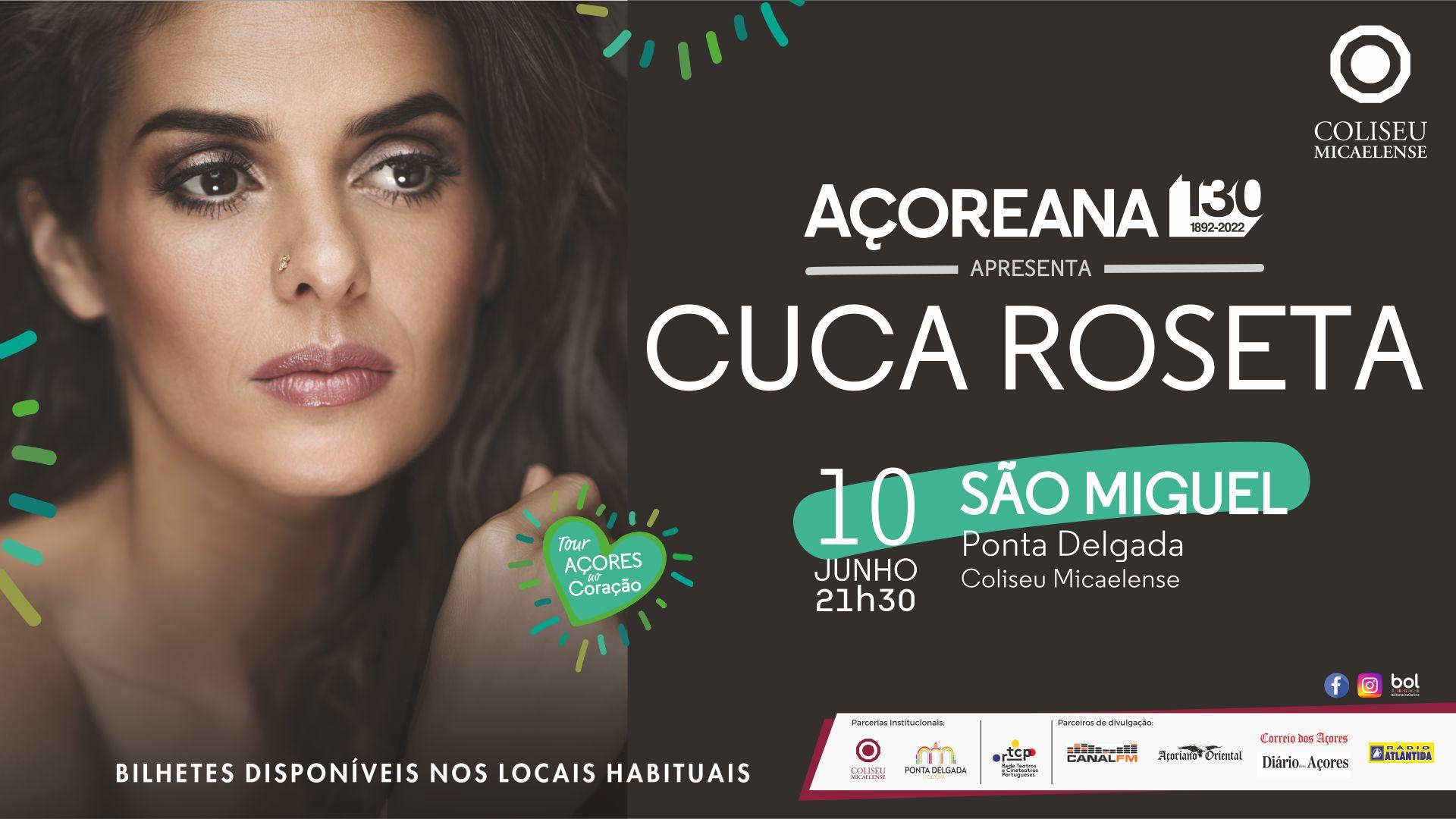 Nove concertos. Um por cada ilha do arquipélago dos Açores. Este foi o itinerário de Cuca Roseta. A fadista percorre as nove ilhas com um espetáculo em cada. A digressão, que se faz com o apoio da Açoreana (que comemora 130 anos), permite que as receitas de cada concerto sejam totalmente revertidas para uma entidade de cada ilha.