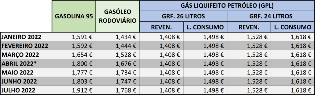 Com esta atualização, desde as 00:00 desta sexta-feira, 01 de julho, o preço da gasolina sem chumbo de 95 octanas passou de 1,803 para 1,912 euros por litro, enquanto o preço do gasóleo aumentou de 1,747 para 1,768 euros por litro.