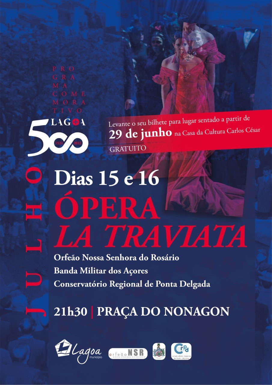 A cidade da Lagoa, na ilha de São Miguel, recebe a 15 e 16 de julho a ópera La Traviata, de Giuseppe Verdi, numa cerimónia gratuita e realizada ao ar livre, comemorativa dos 500 anos de elevação a vila e dos 10 a cidade.