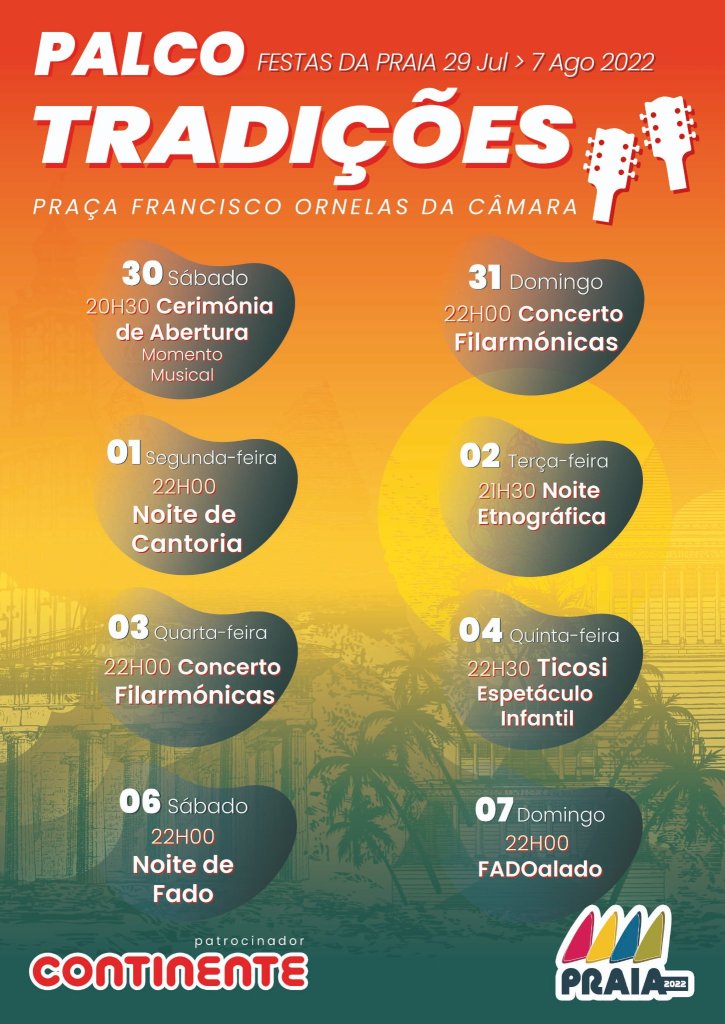 O palco “Tradições”, na Praça Francisco Ornelas da Câmara, patrocinado pelo “Continente”, acolherá concertos de filarmónicas, fado, cantoria, música infantil, folclore e os FadoAlado, para além de outras “novidades” a apresentar “em breve”.