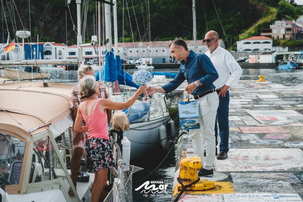 O presidente da Câmara Municipal da Horta, Carlos Ferreira, acompanhado pelo executivo e por representantes da Comissão Náutica Municipal, deu esta sexta-feira, as boas-vindas aos iatistas que visitam a cidade da Horta, com a entrega de hortênsias, iguarias locais e o programa da festa.