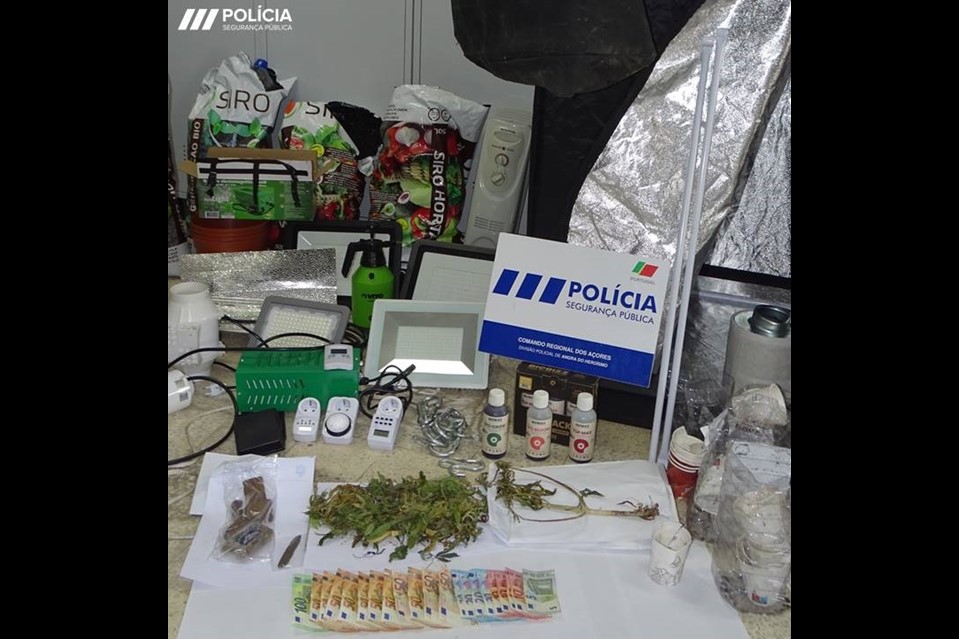 Segundo relata a PSP no comunicado enviado às redações, “na concretização de diligências processuais e na realização de uma busca domiciliária foi identificado e desmantelado um local de produção de Liamba, sendo apreendido uma estufa com vários acessórios associados, 2 plantas de cannabis sativa L, com dimensões entre os 21 e os 50 centímetros, 21 doses de liamba, 448 doses de haxixe e valores monetários, entre outros objetos relacionados com este ilícito criminal”.