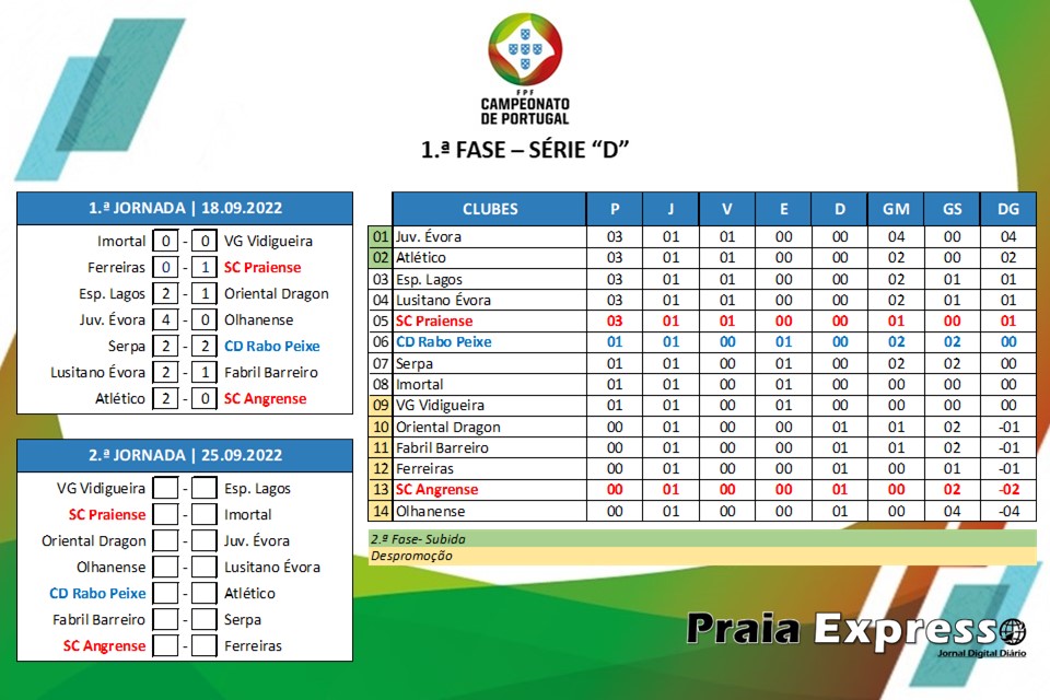 Resultados da 6.ª jornada e respetiva tabela classificativa após realização da mesma, referentes à série “D”, da 1.ª Fase do Campeonato de Portugal, época 2022/2023.