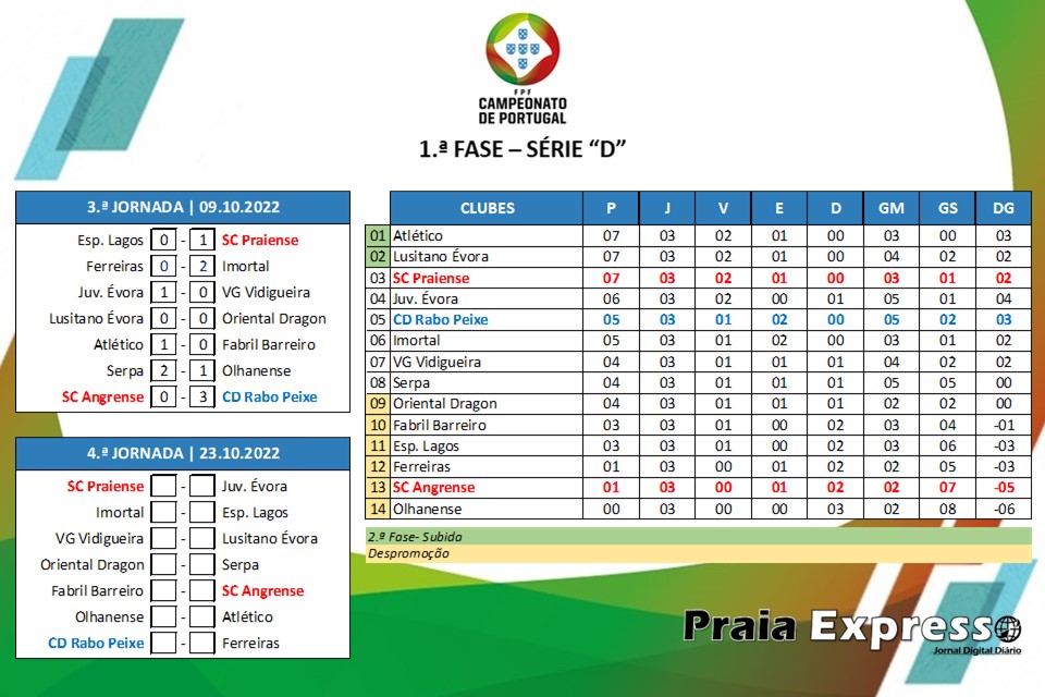Pela 4.ª jornada consecutiva a vencer, o Rabo de Peixe que lidera a tabela classificativa com 14 pontos, venceu, em Olhão, a formação da casa (Olhanense) por 2 — 0. Em parceria com o Lusitano de Évora, a formação da Ribeira Grande é o único clube da série invencível.