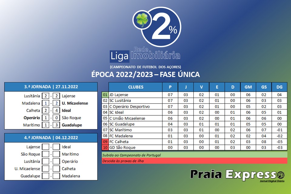 Resultados da 6.ª Jornada da Liga Imobioliária 2% (Campeonato de Futebol dos Açores) assim como tabela classificativa após a realização da mesma.