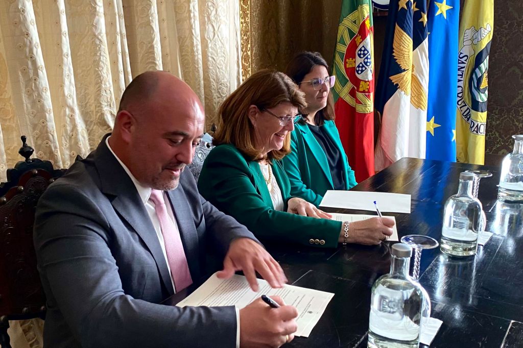 Com a assinatura do referido documento, a Secretaria Regional do Turismo, Mobilidade e Infraestruturas entrega à Câmara Municipal de Santa Cruz, um ponto de carregamento de veículos elétricos, no âmbito do projeto LIFE IP CLIMAZ (LIFE19 IPC/PT/000004 – LIFE IP CLIMAZ), cofinanciado pelo programa LIFE, que ficará instalado no edifício dos Paços do Concelho e ligado à rede da Entidade Gestora da Rede de Mobilidade Elétrica – EGME (MOBI.E).