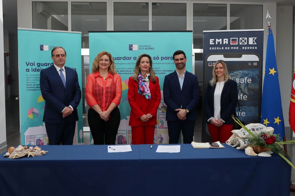 Participaram na sessão de entrega do primeiro DAE o Secretário Regional do Mar e das Pescas, Manuel São João, o Diretor Regional da Juventude, Eládio Braga, e a Diretora do Escola do Mar dos Açores, Ana Rodrigues, e a proponente do projeto, Rita Alves.