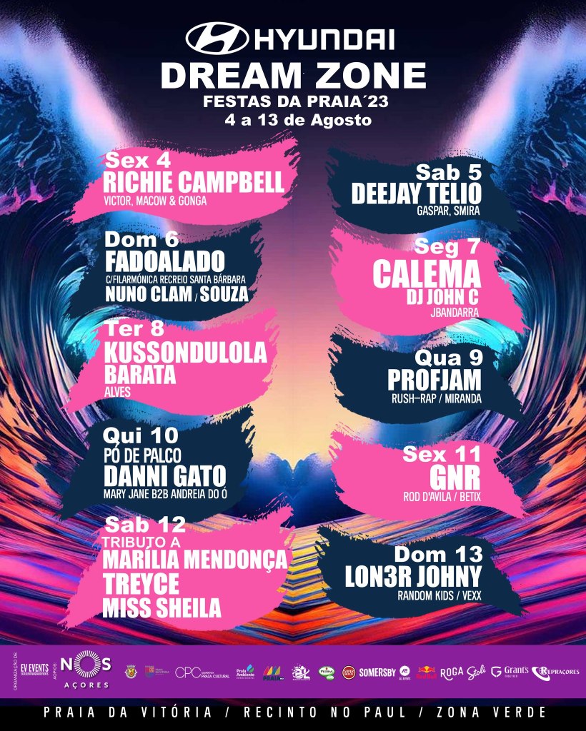 GNR, Danni Gato, Profjam, Tributo a Marília Mendonça, Kussondolola, FADOALADO, Deejay Telio, Richie Campbell, Calema e Lon3r Johny são os nomes principais da edição deste ano do palco principal (Hyundai Dreamzone).